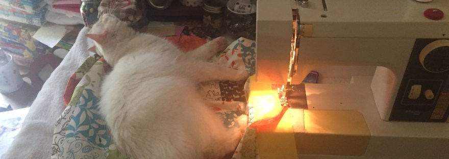 To this day, every time I am at the sewing machine, Mr. Bobbins is either on my lap or right there “helping” me sew.