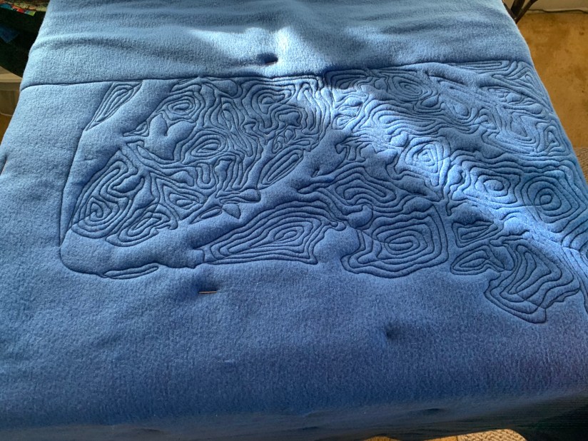 This was such a fun panel to to Free-Motion Quilt. I did study it for a bit to get an idea of where to start and what to do. It was actually a very relaxing this to do on Molly. No need to get all high anxiety like I normally do when using my regular sewing machine.