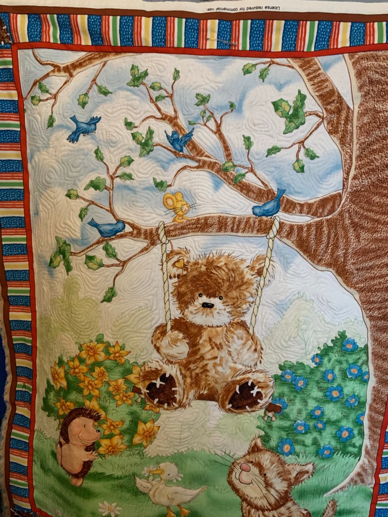 What a sweet bear panel to quilt! His name is Popcorn and his friends are just as sweet and adorable as he is.