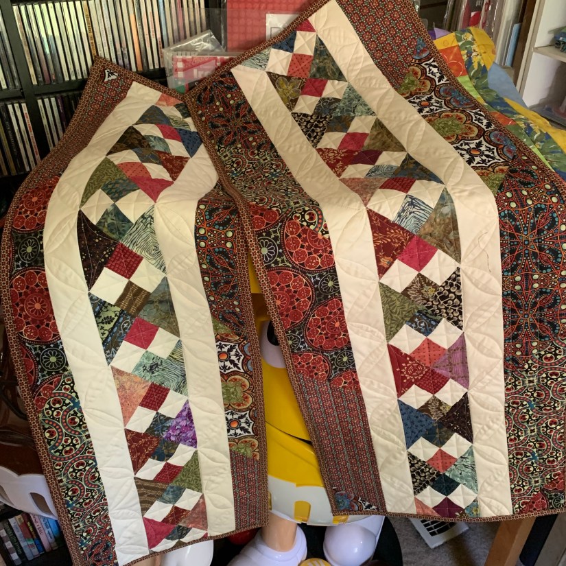 I usually take so many photos of what I’m making. For these table runners project, though, I only took photos of the finishing up parts. I must have really been in the zone! Wish I could summon that focus more often, lol.