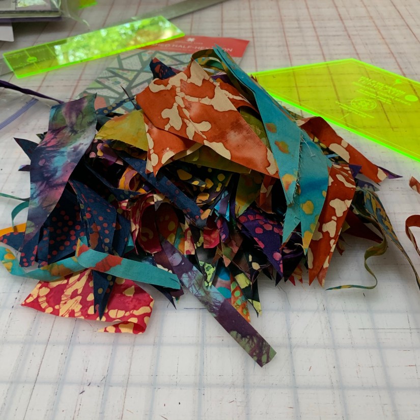 There wasn’t a lot of fabric scraps left, but more than I like to waste. So I did put the pile in a bag and will pass on to my mom who has been making some really cool QAYG blocks… And she just loves fabric scraps 😉