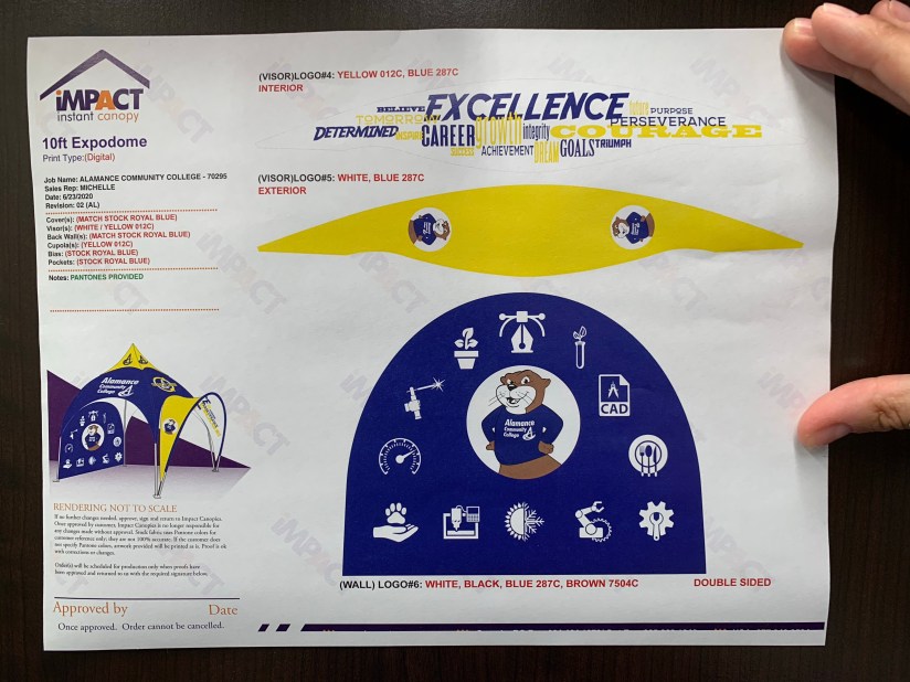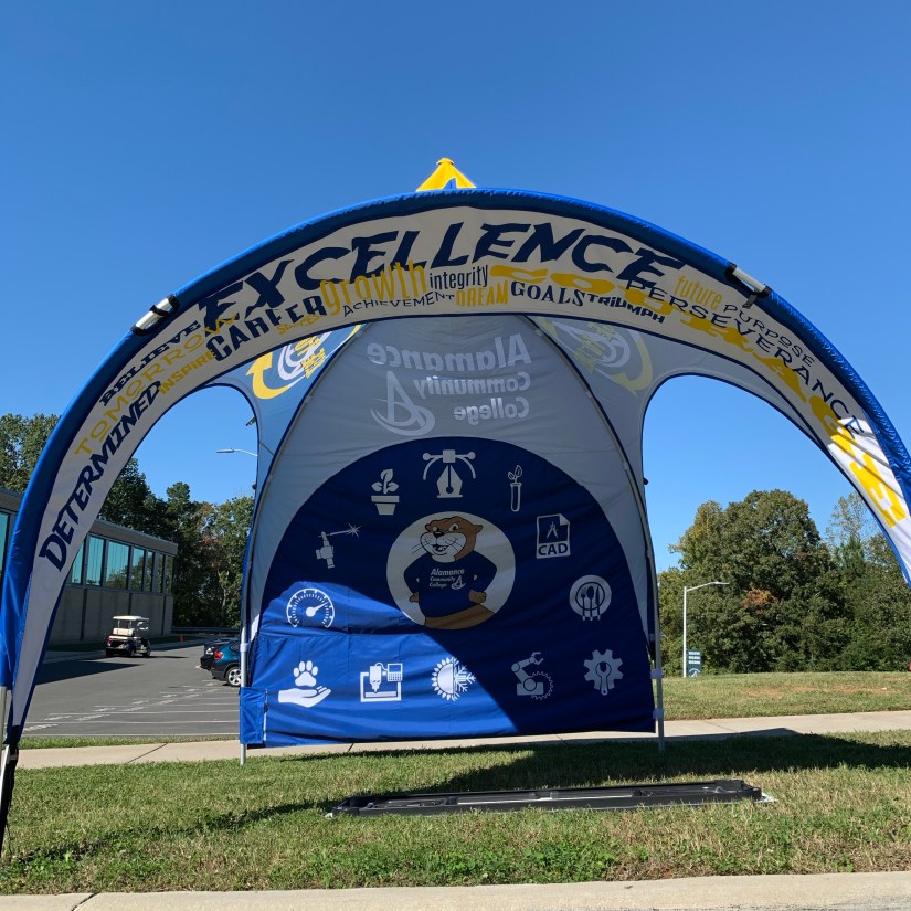 Back in May we were contracted to design a dome tent and some flags for the local community college. This was pretty exciting because we hadn’t done anything like these before.