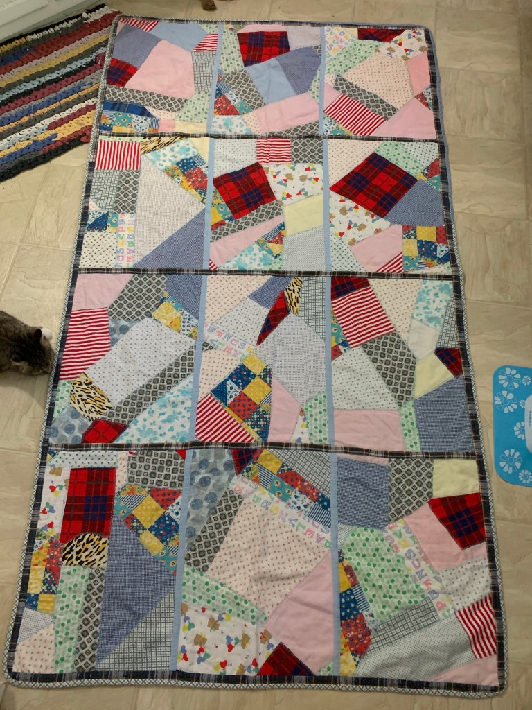 I’m not sure what was used for the center batting, but this quilt if kindof heavy. Heavier than the other throw quilts I’ve made or seen this size. But heavy or not, it has been a keeper.
