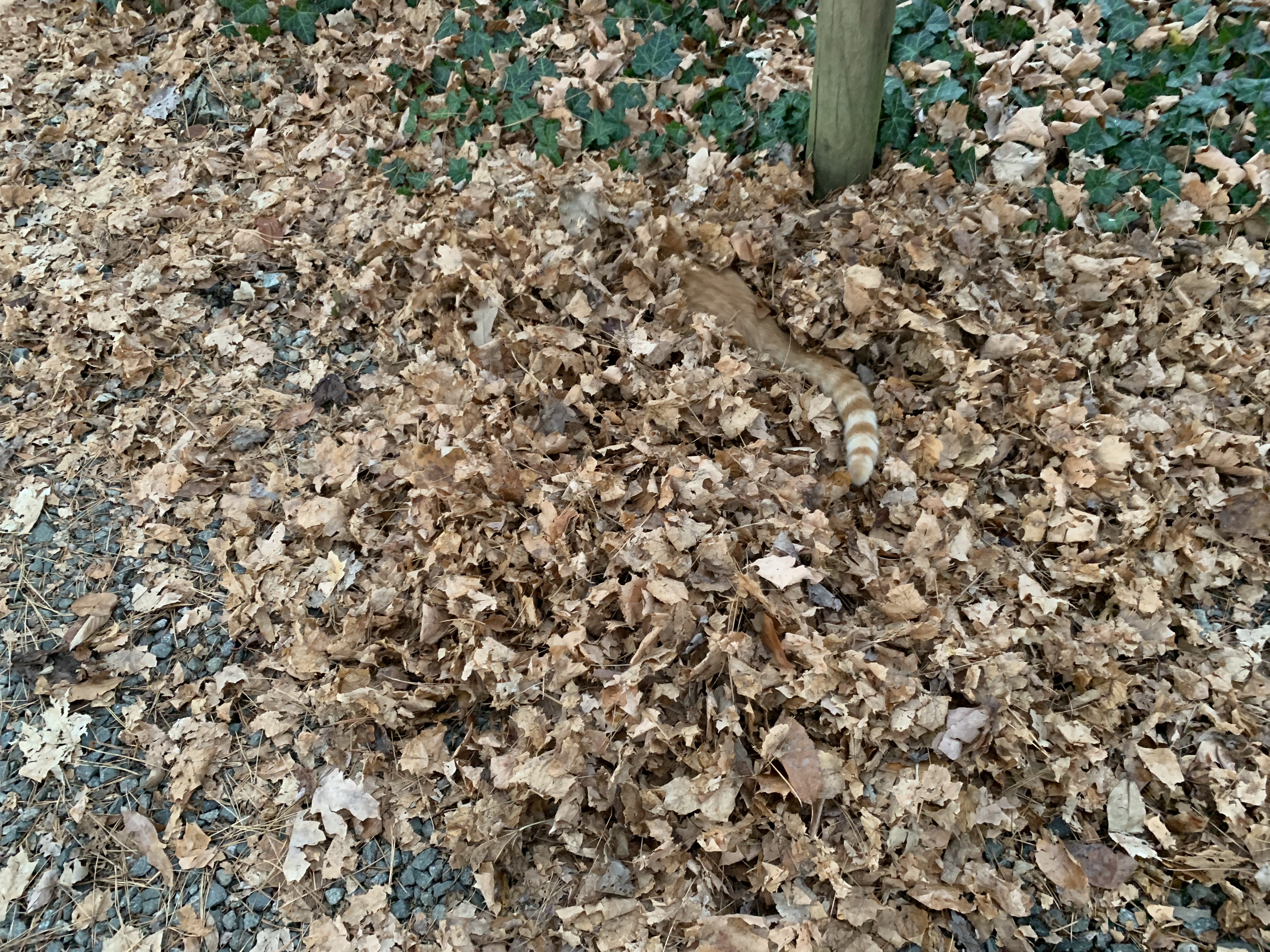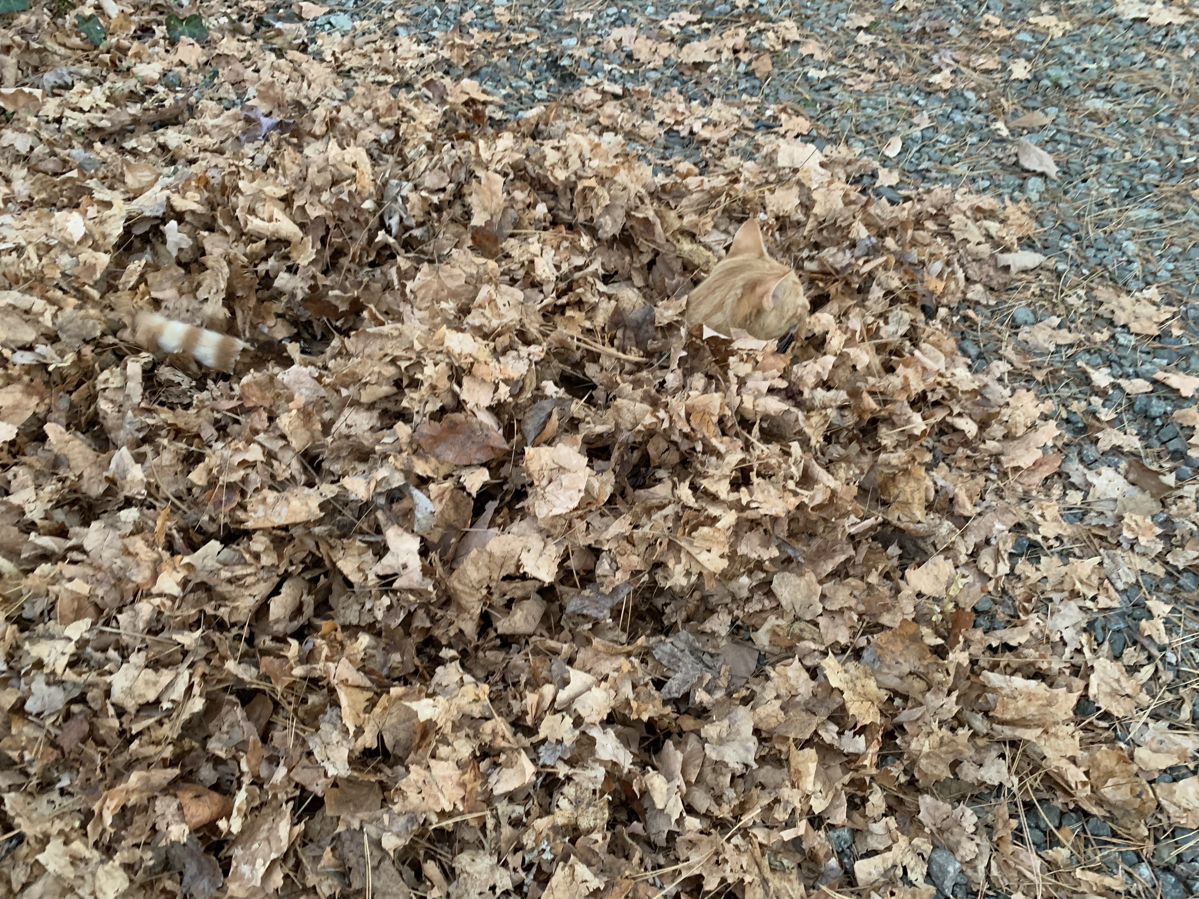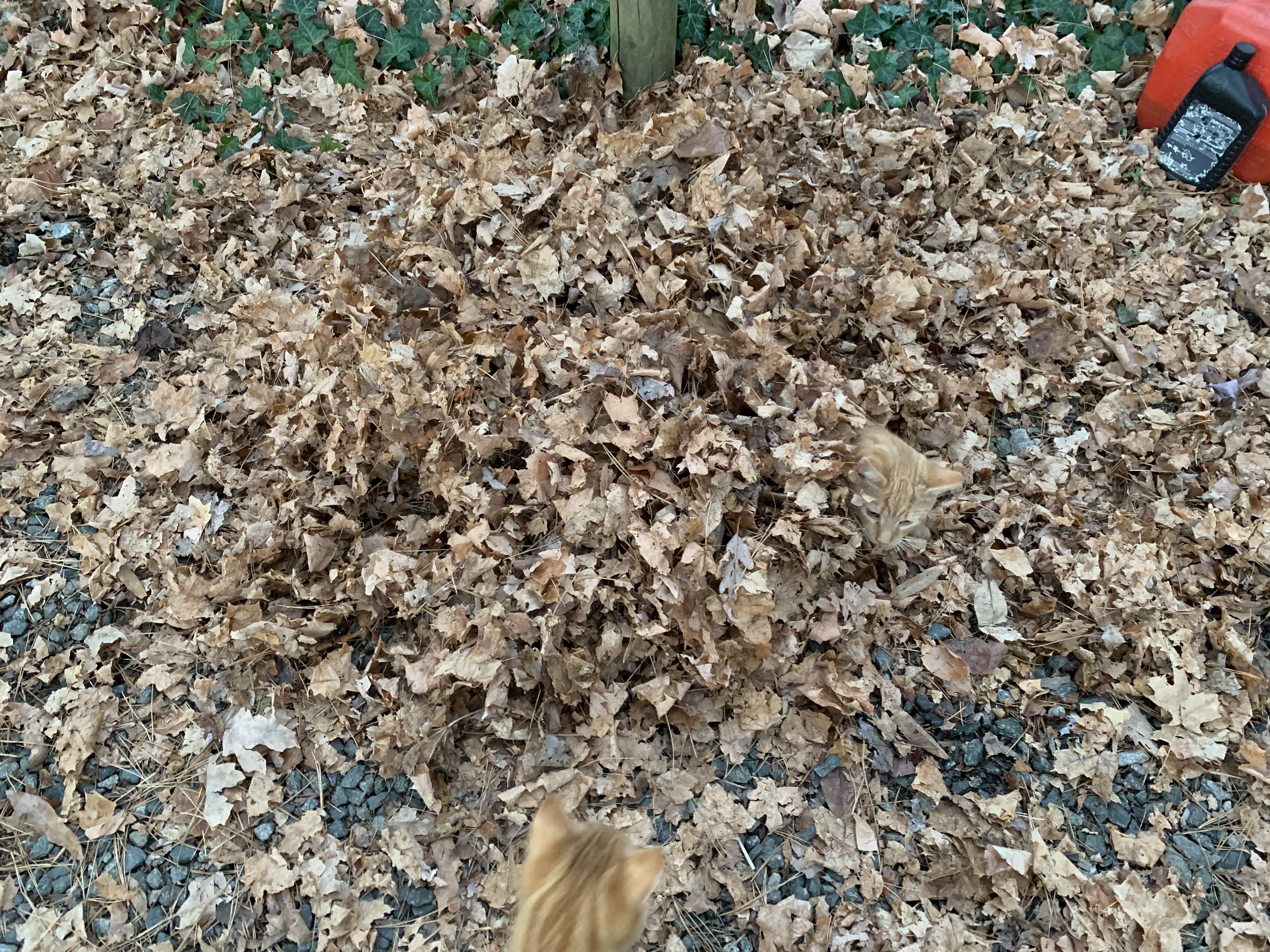 They have played in this pile of leaves until they were basically mulched. This last week of rain and snow, though, has pretty much finished their pile off.