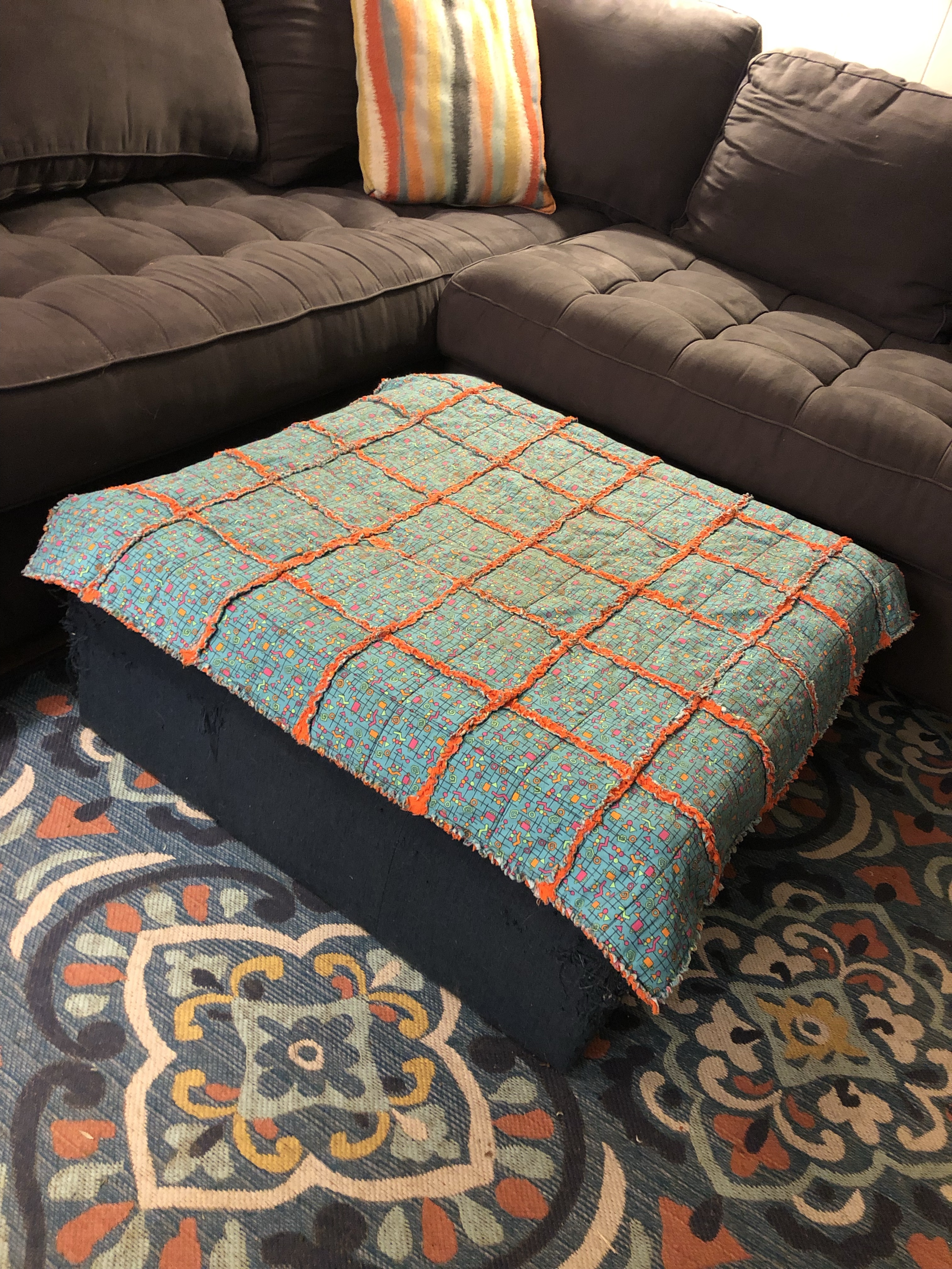 She was so happy to find my quilt. She had been looking for a bright colored quilt to cover her ottoman and was having a hard time finding a quilt with just the right colors. Her words were “I was so excited when I saw your quilt, that I actually did a little happy dance!” Tell me that doesn’t just make you smile 😀