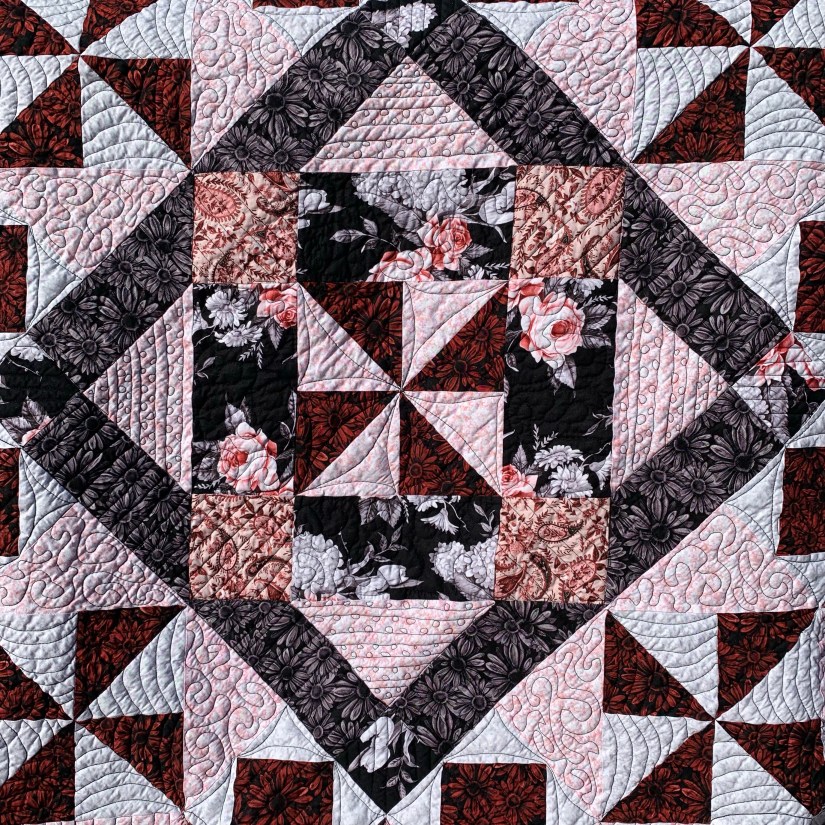 After I completed the quilt, I had to wait for a dry and sunny day to get photographs of it. When giving a quilt, I often forget about this one important task, so I am trying to get better at making sure I have photographs to capture the finished quilt before it goes to its new home.