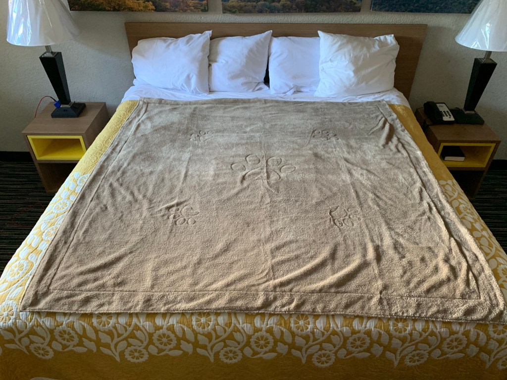 Fast forward–I got the quilt top together and then had to figure out how to sandwich and finish it…I ended up getting one of the those soft fuzzy blankets of the backing. Not knowing how to bind using actual binding, I sewed the the layers face to face, flipped and finished the edges with a straight line.
