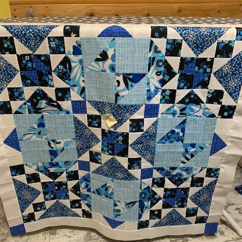 This was mom’s last PMQ that she never felt good enough to get to. She loved the blues of this color way! She always used flannel for her quilt backings, so now I’m on a mission to find just the right flannel 🙂