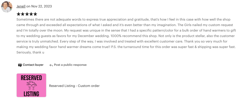 UPDATE: After I posted this last week, I remembered that I wanted to share the really great review/feedback from this customer…