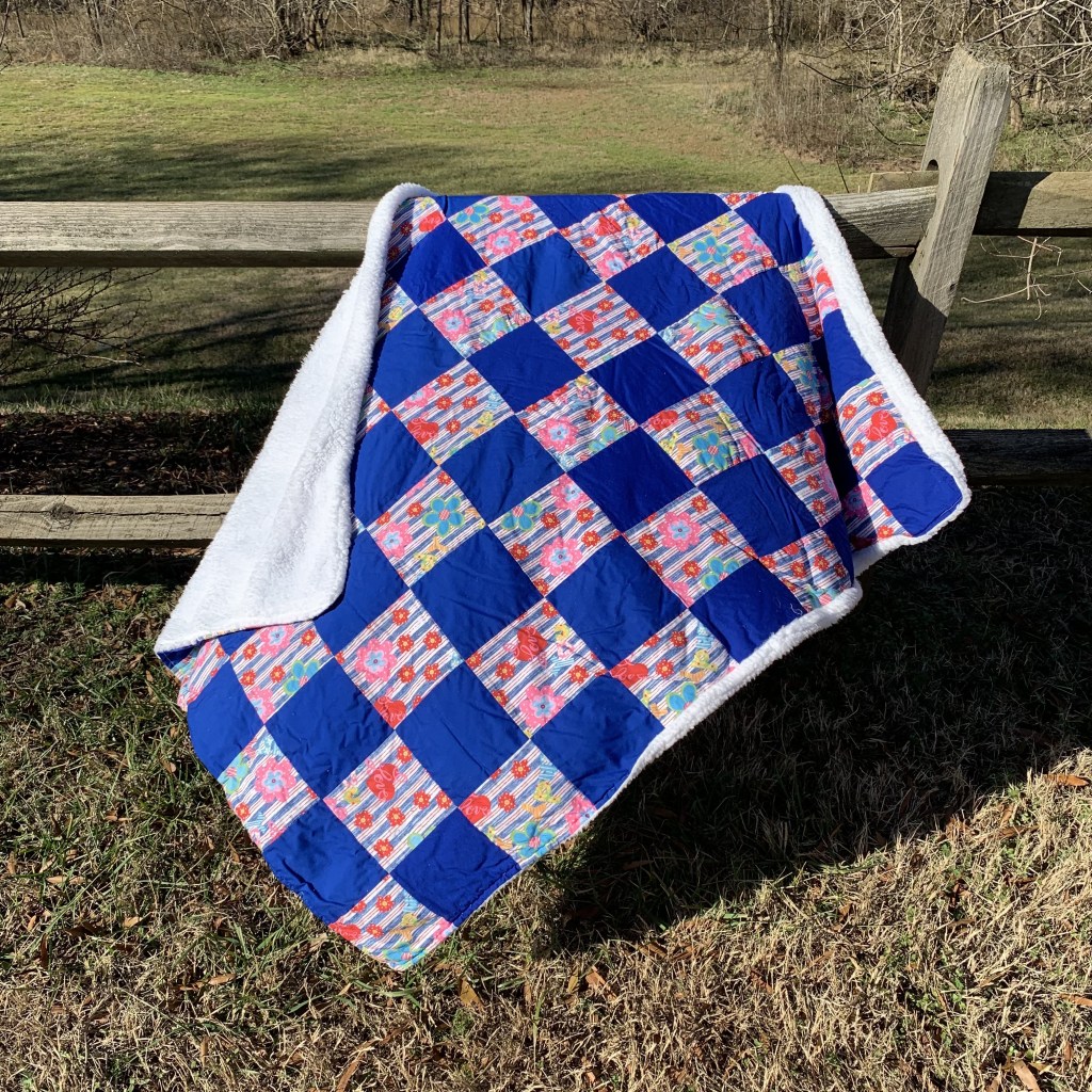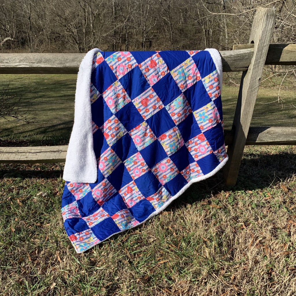 I went through my stash and found this white sherpa minky. I’ve seen posts where quilts are backed with minky and no quilting is done. So that is what I chose to do with this quilt. Not sure what I think about this method yet. Kindof feels incomplete…