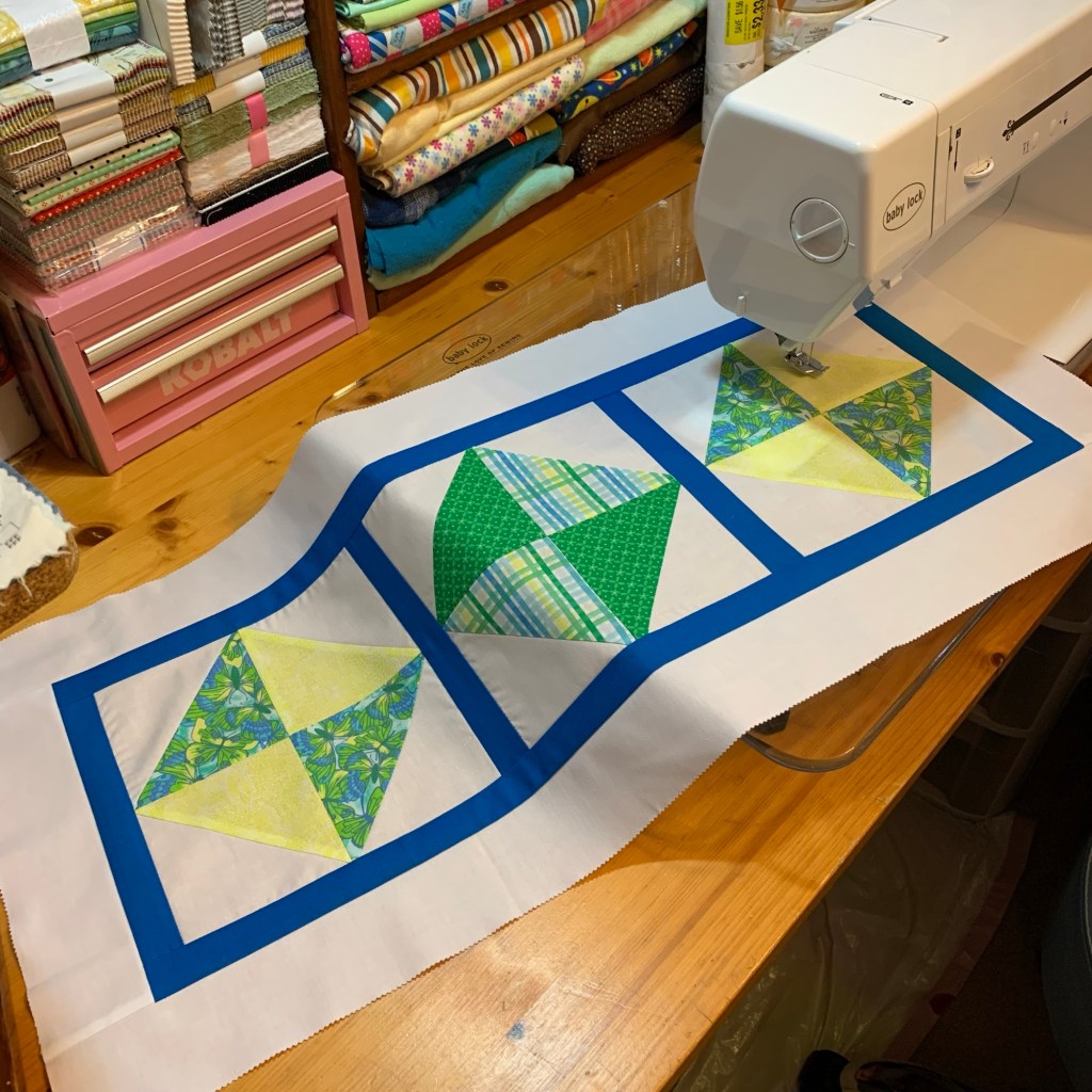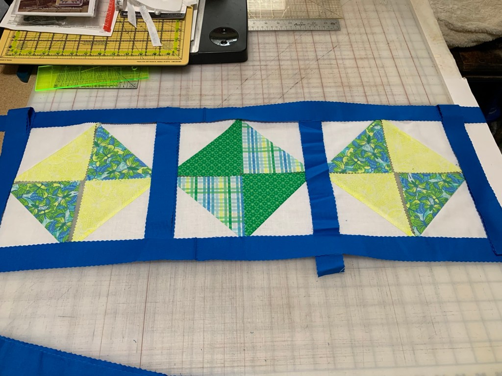 QuiltsHST Layout 1 March 8, 2026 The Girls Get Creative The first layout with the stack of HSTs: A fun bright table runner! And I used some of leftover blue honeybun strips! Share this: Share on Facebook (Opens in new window) Facebook Share on Pinterest (Opens in new window) Pinterest Share on LinkedIn (Opens in new window) LinkedIn Share on X (Opens in new window) X Share on Tumblr (Opens in new window) Tumblr Share on WhatsApp (Opens in new window) WhatsApp Like Loading... Published by The Girls Get Creative View all posts by The Girls Get Creative
