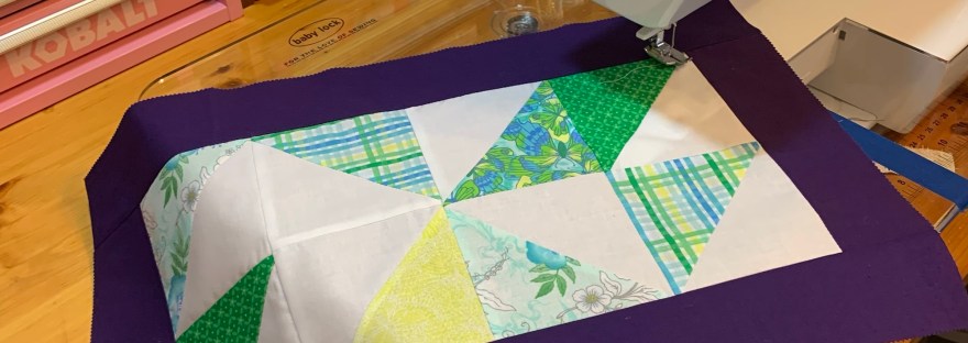 My husband wanted to mess with my blocks so I let him lay some out and choose a jelly roll border. This is his layout: